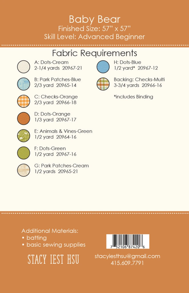 Baby Bear G* SIH 114 Stacy Iest Hsu#1 using Moda fabrics Animal Park collection'