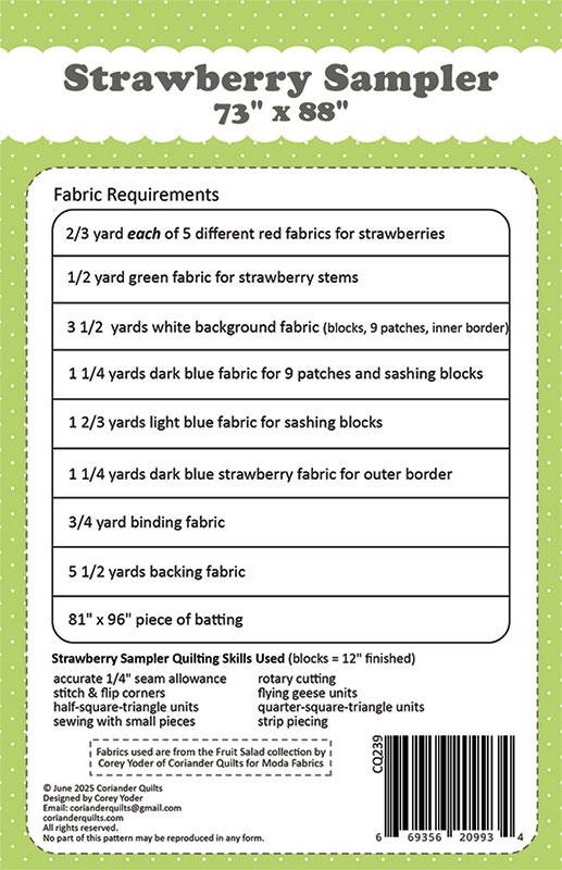 New Strawberry Sampler G CQ 239 Coriander Quilts pattern